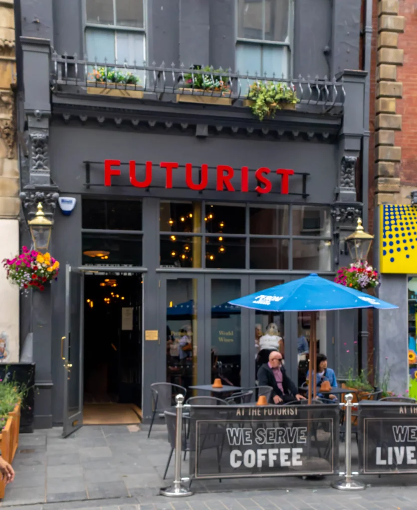Nestled in the heart of Liverpool’s vibrant city centre, The Futurist is the ideal spot to unwind with a refreshing drink or enjoy a tasty bite to eat. Whether you’re catching up with friends, stopping by after work, or just soaking up the atmosphere, you’re always welcome.